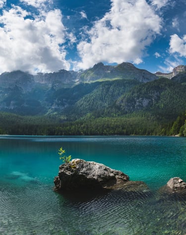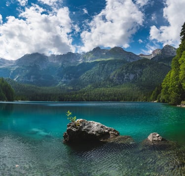 Il celebre “lago rosso” incastonato tra le Dolomiti di Brenta, famoso per le sue acque turchesi e l’atmosfera incontaminata del Parco Adamello-Brenta.